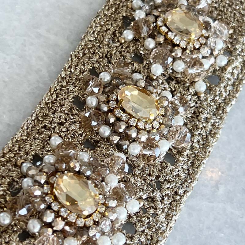 Handwoven Gold Crochet And Embroidered Crystal Statement Cuff Bracelet