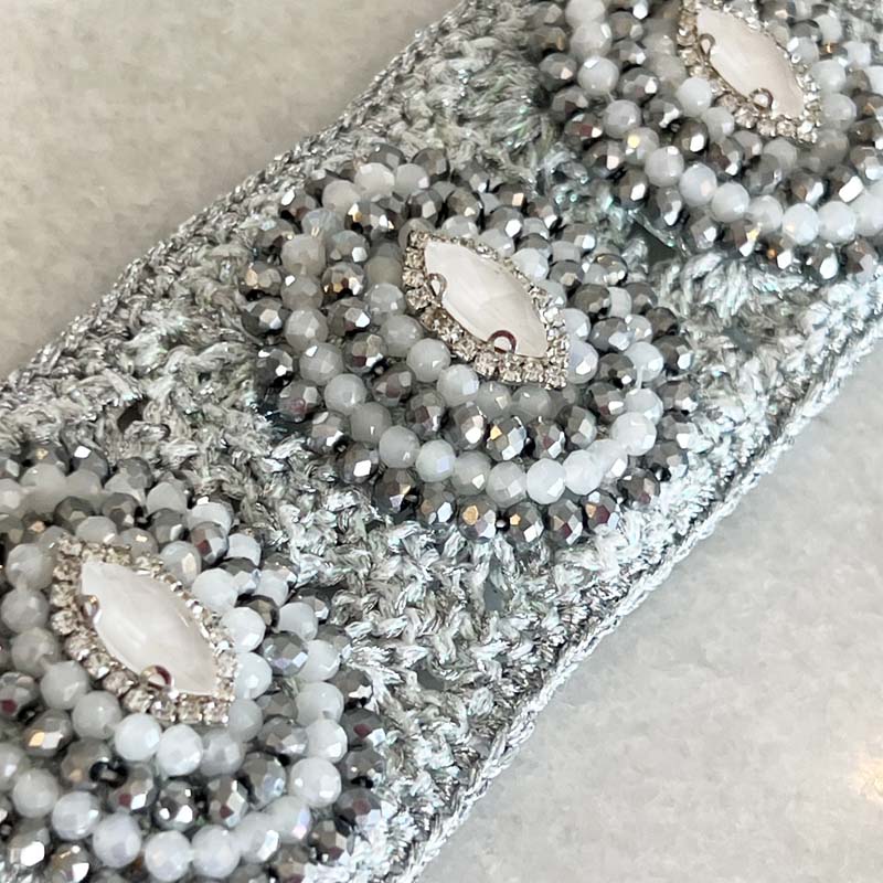 Handwoven Silver Crochet And Embroidered Crystal Statement Cuff Bracelet