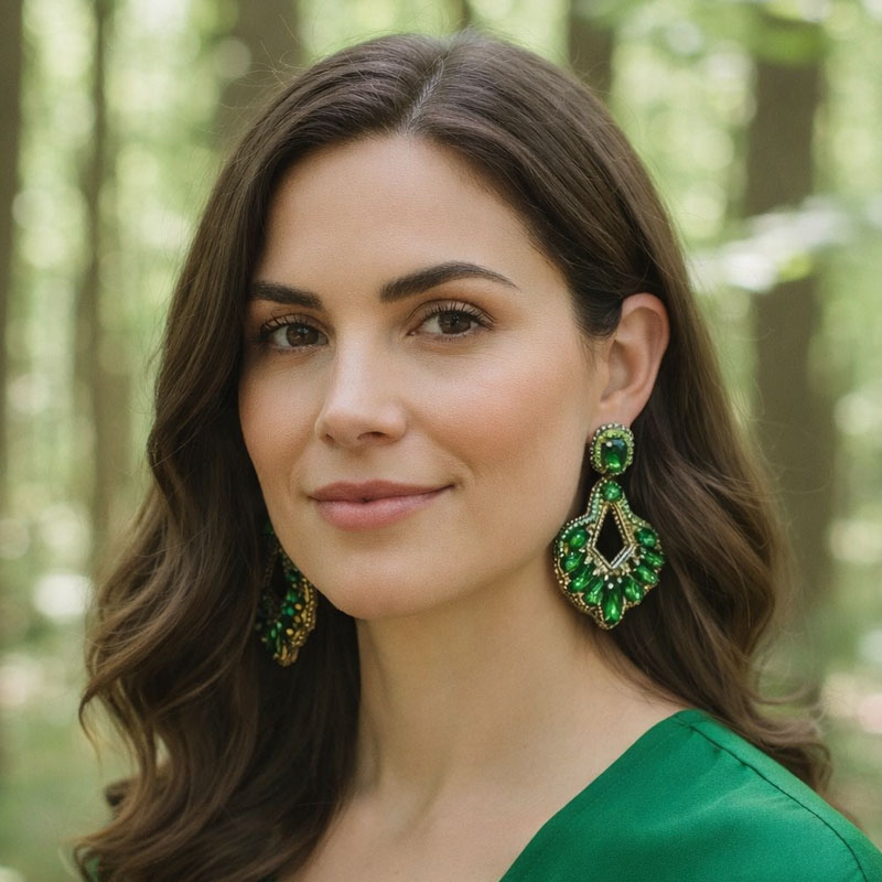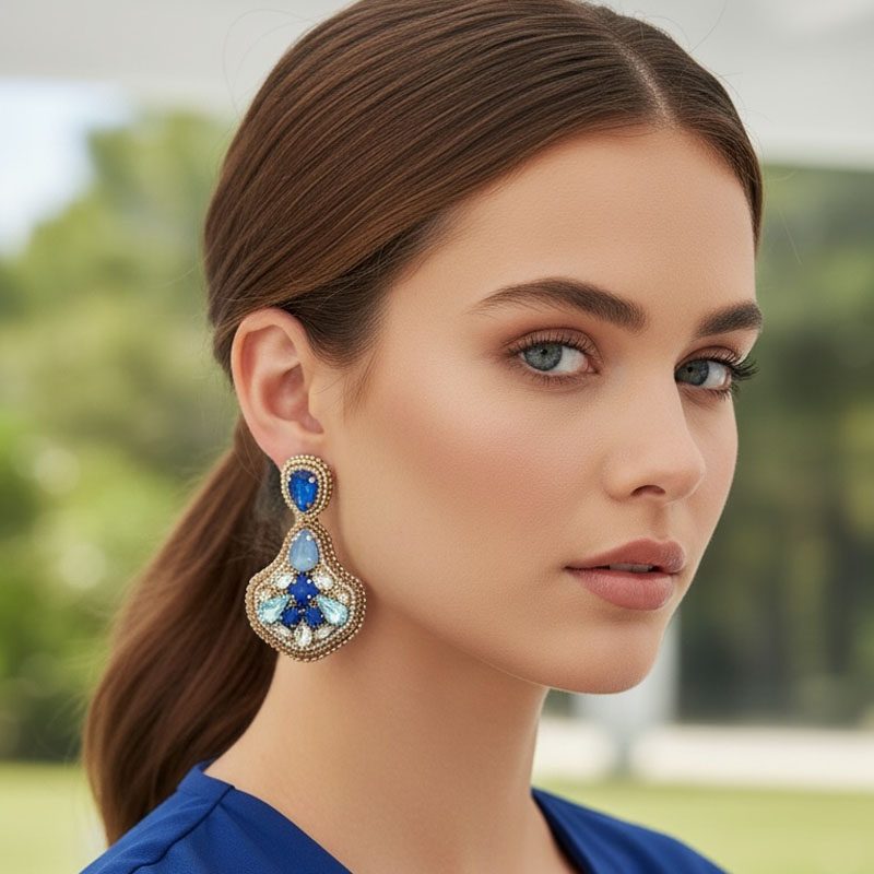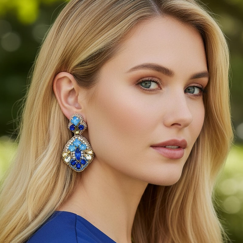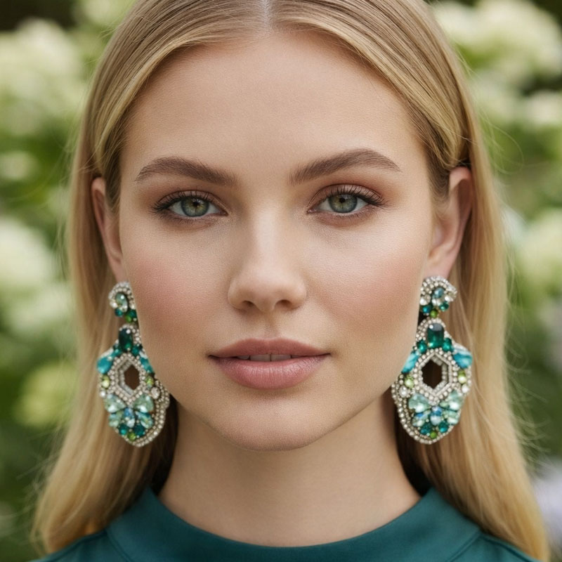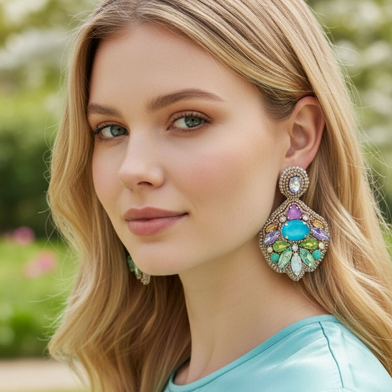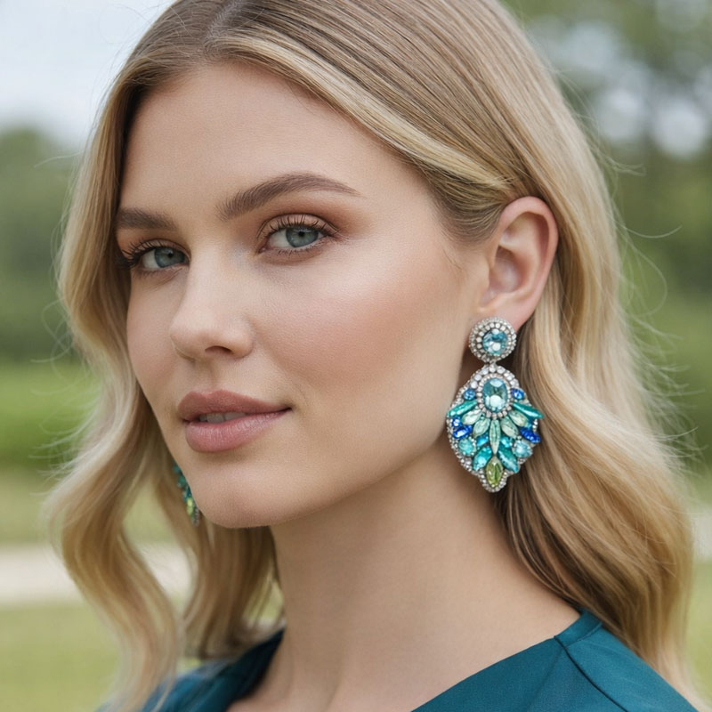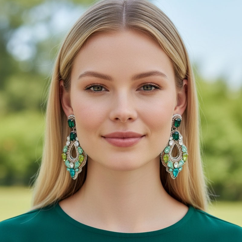 Handmade Lightweight Blue and Green Crystal Statement Earrings