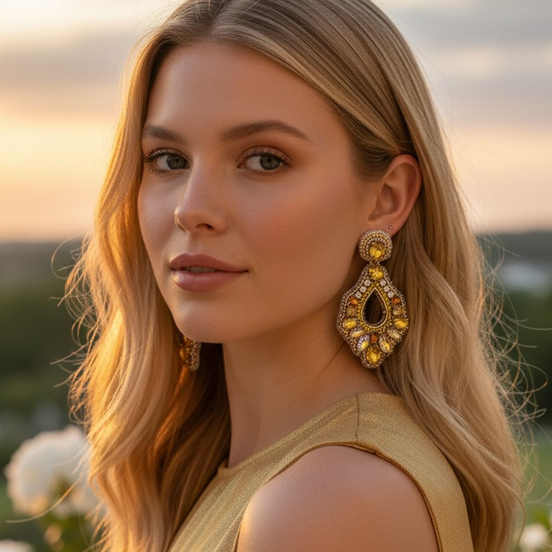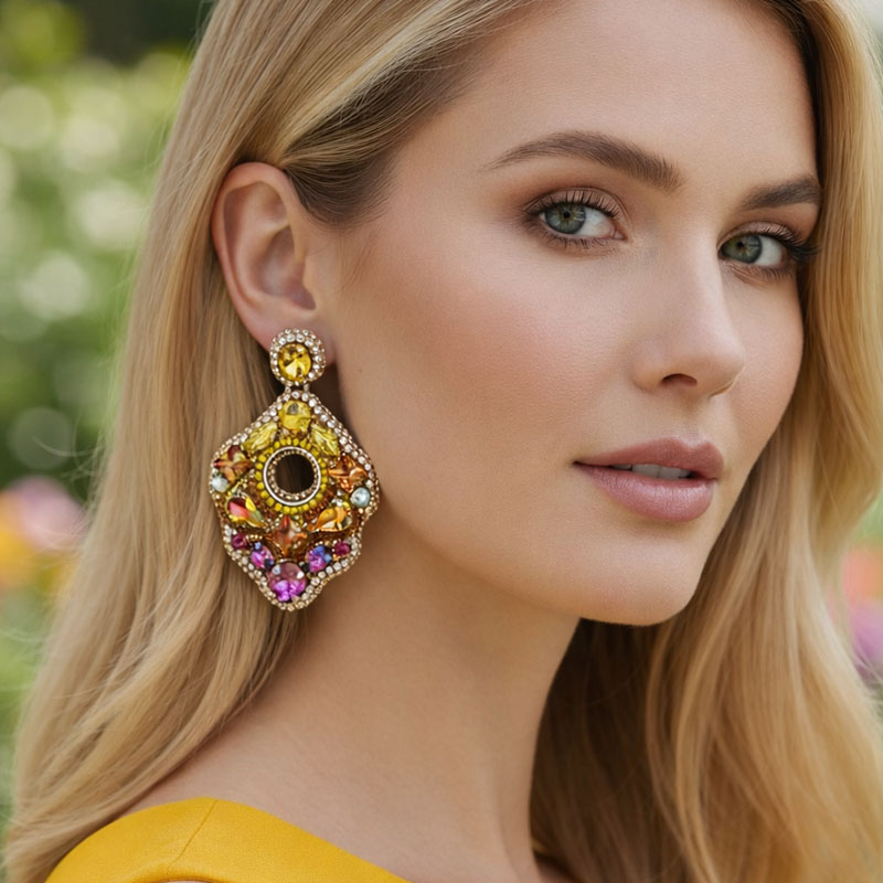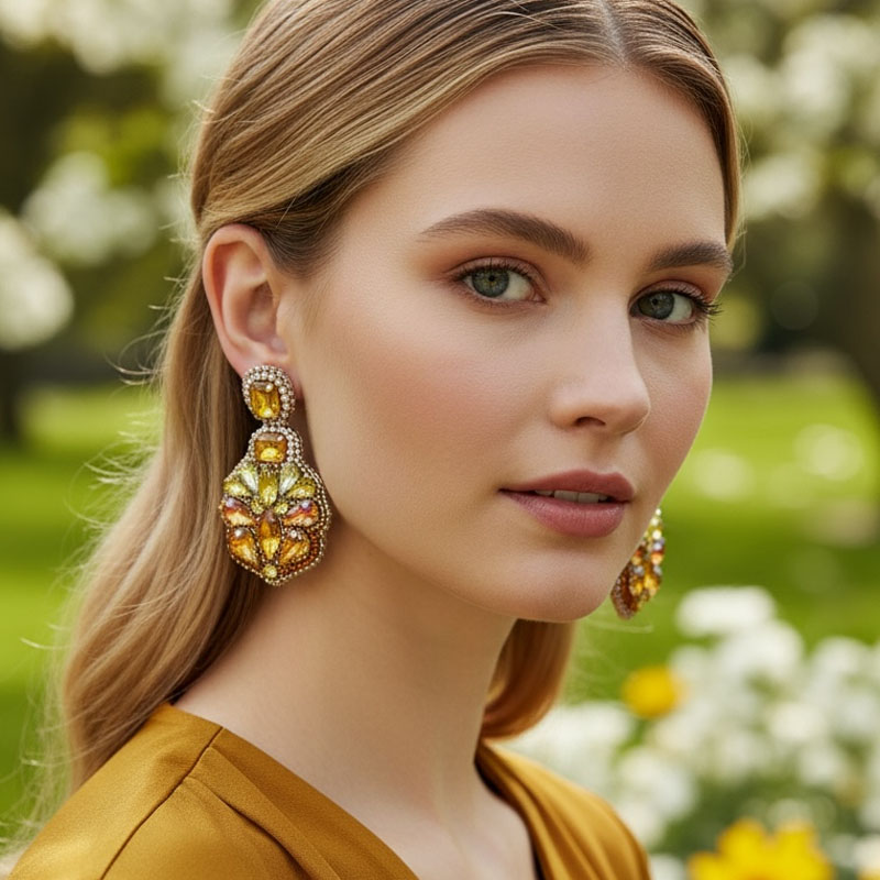 Handmade Lightweight Yellow Crystal Statement Earrings