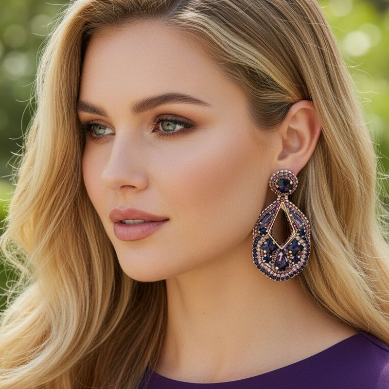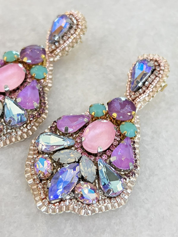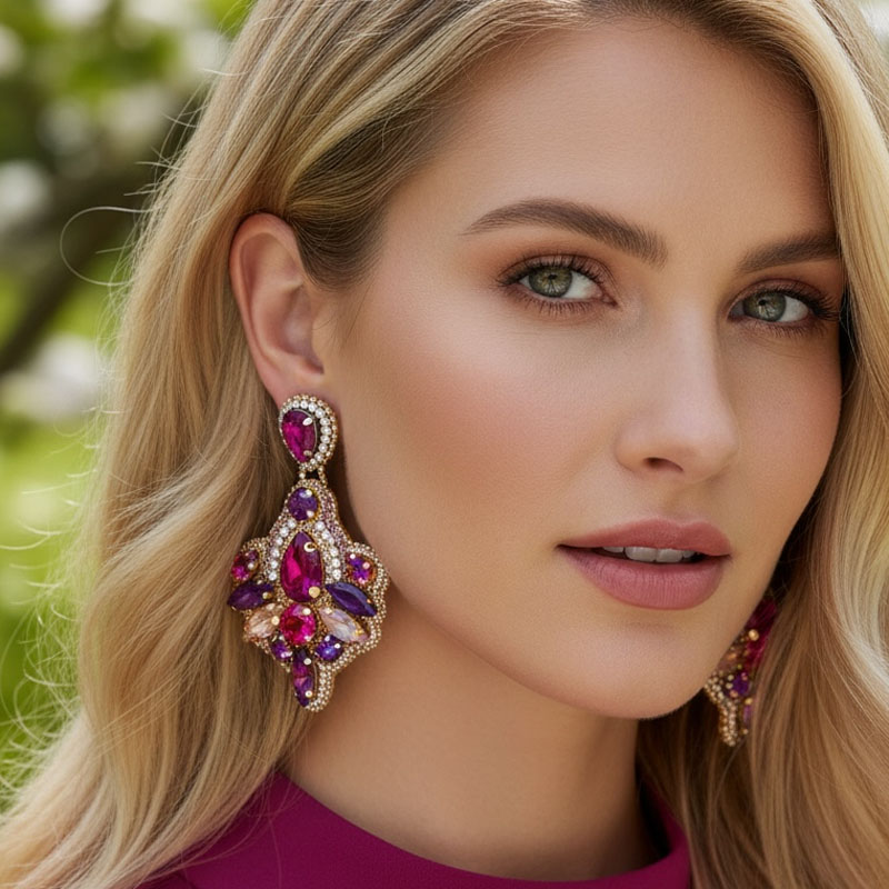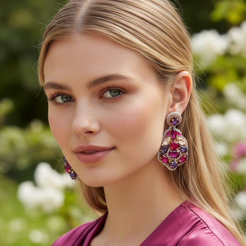 Handmade Lightweight Purple and Pink Crystal Statement Earrings