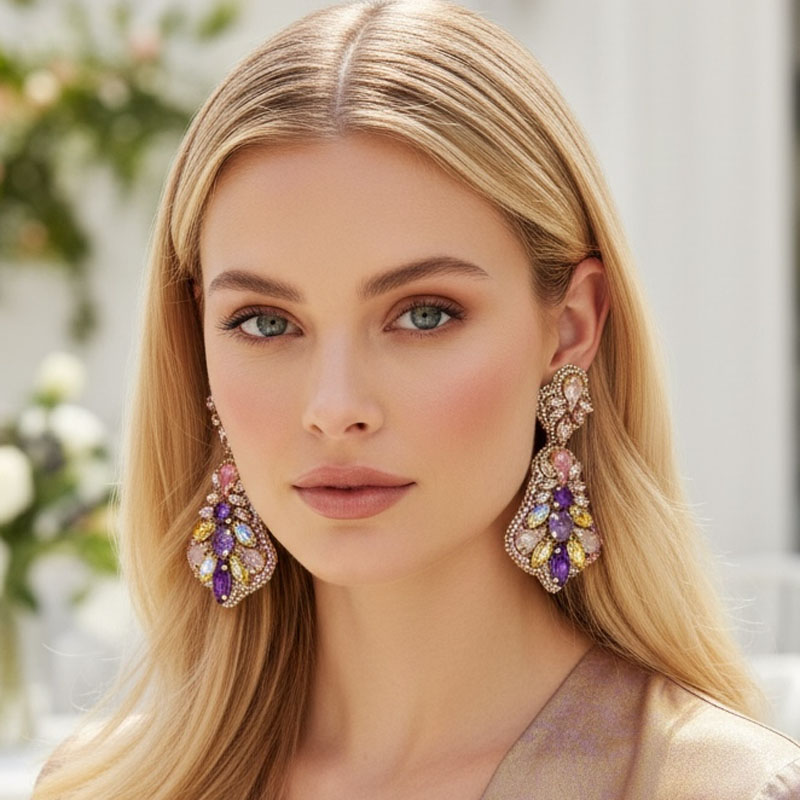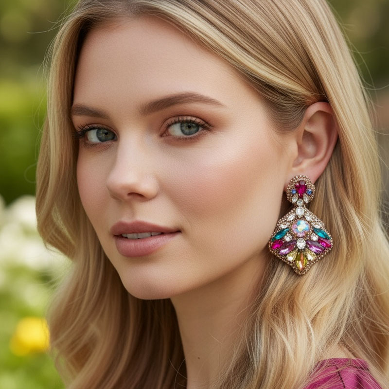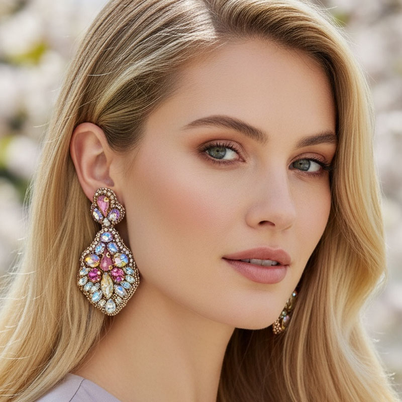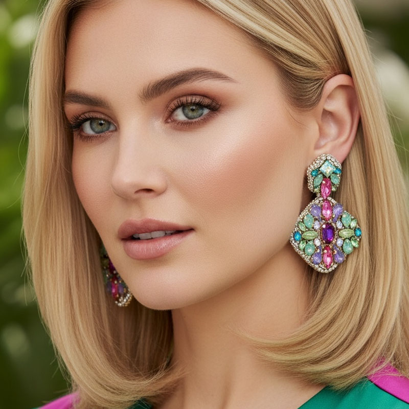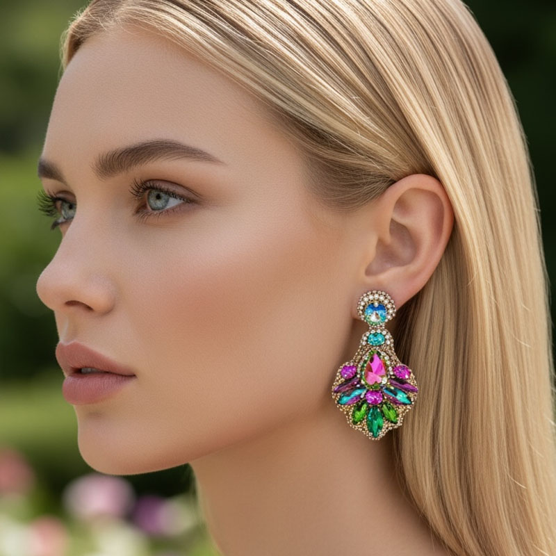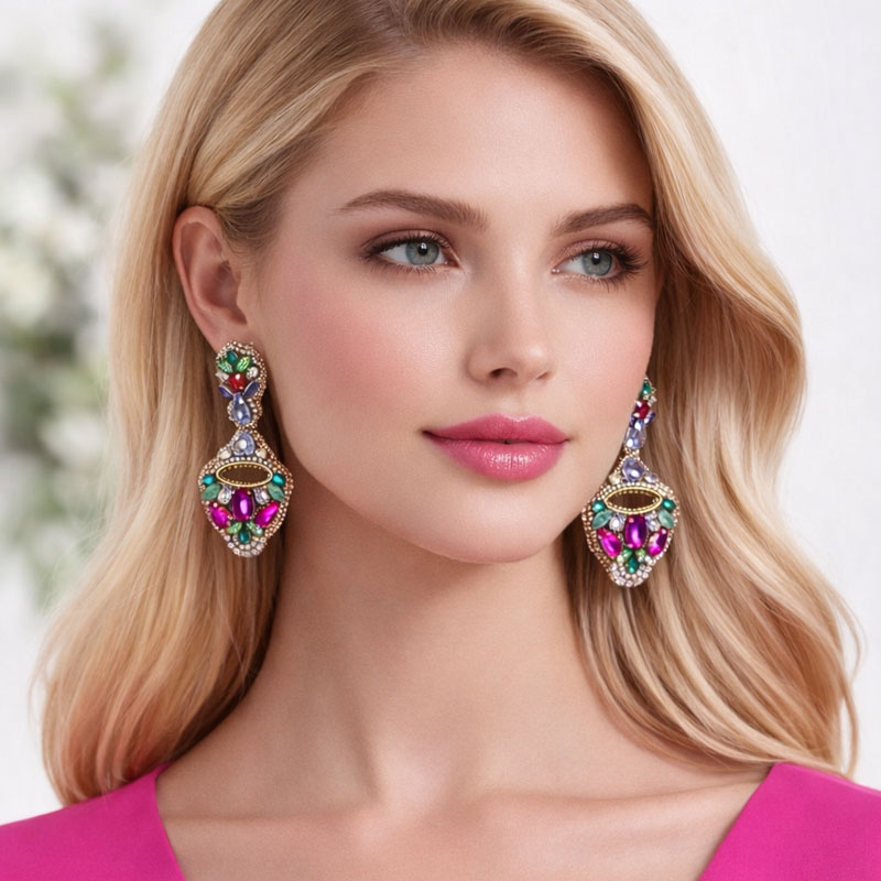 Handmade Lightweight Multicoloured Crystal Statement Earrings
