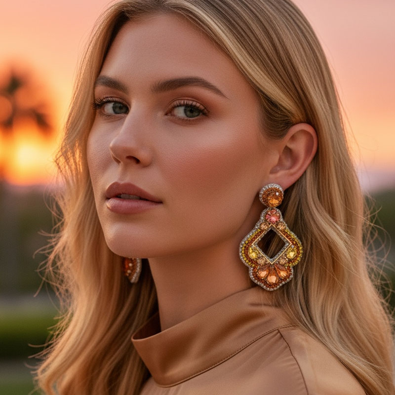 Handmade Lightweight Yellow and Orange Crystal Statement Earrings