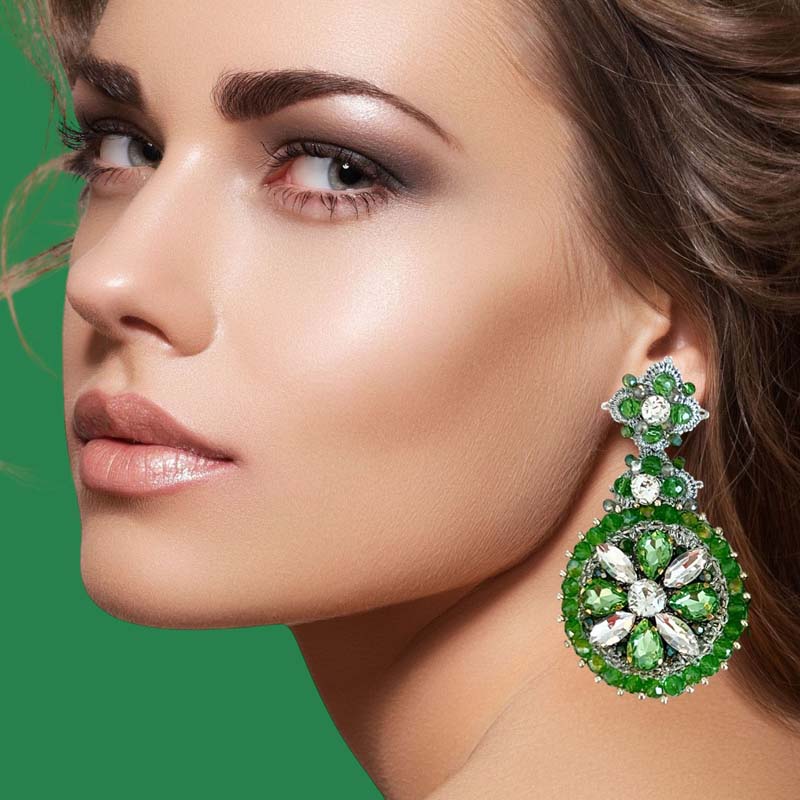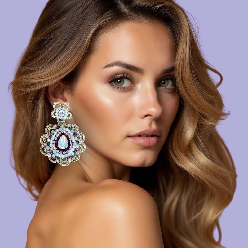 Handwoven Gold Crochet And Embroidered Lightweight Crystal Statement Earrings