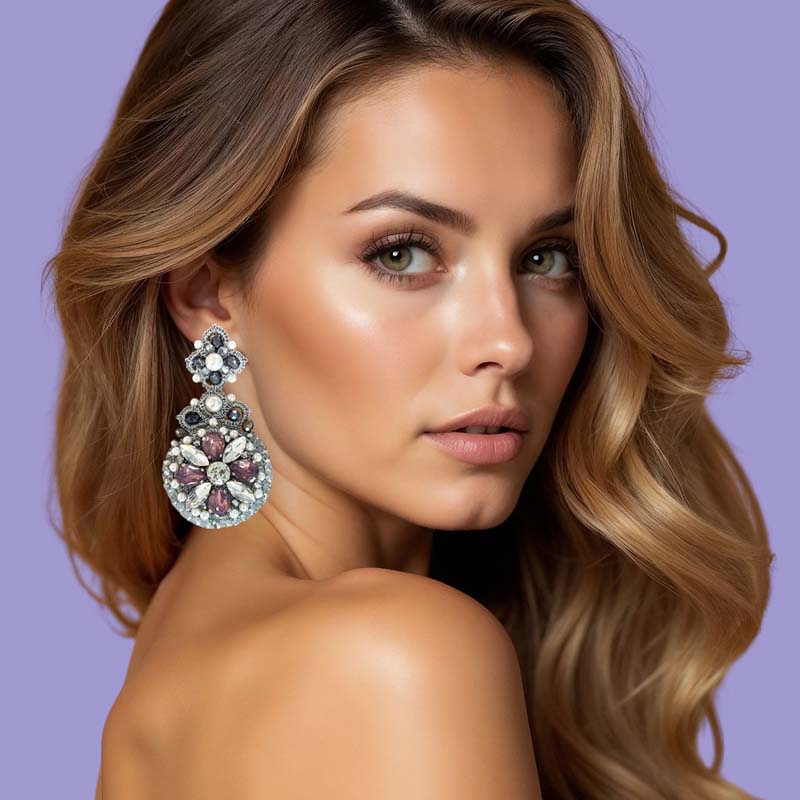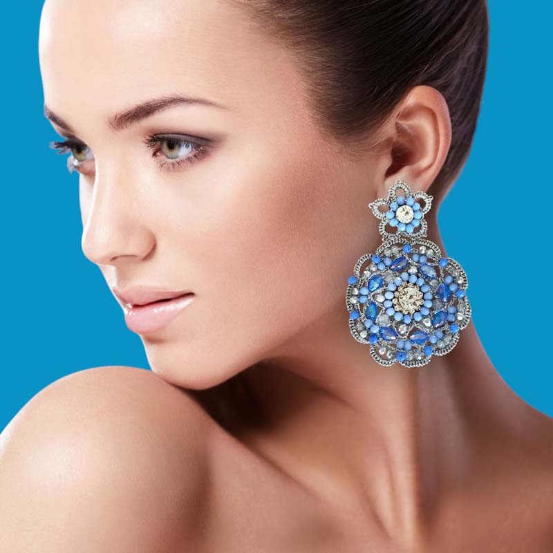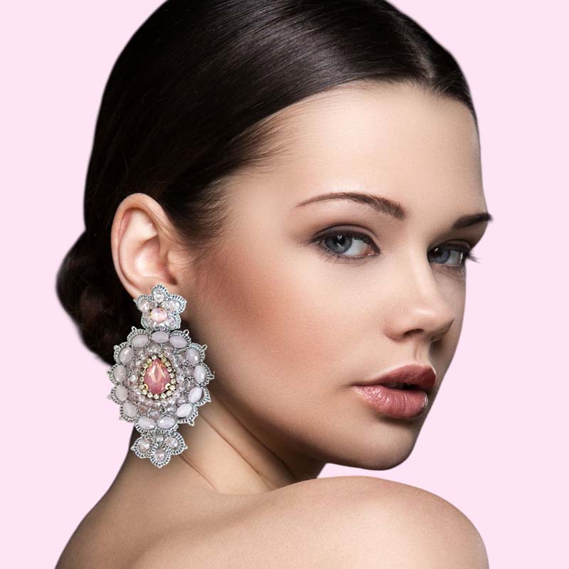 Handwoven Silver Crochet, Tatting And Embroidered Lightweight Crystal Statement Earrings