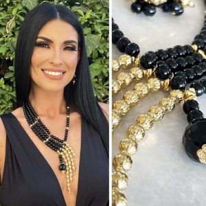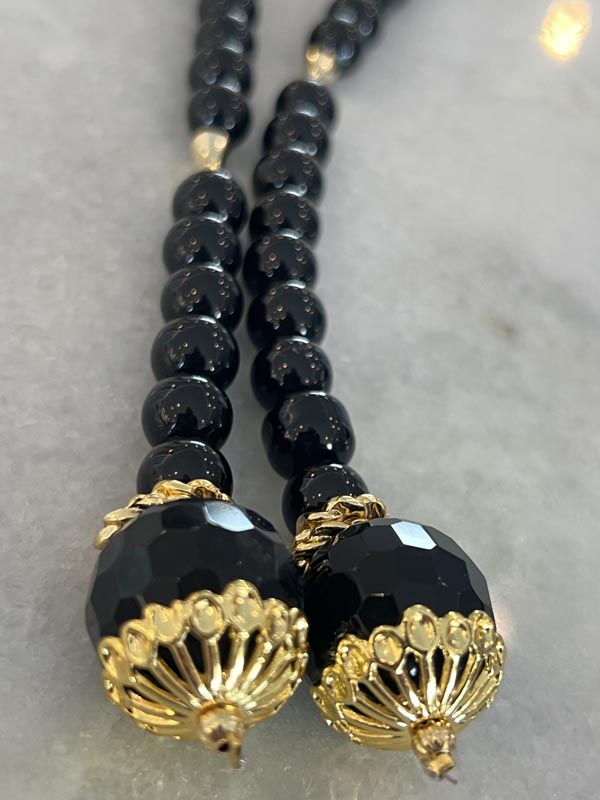 Handmade Multi-strand Onyx statement necklace combined with gold plated elements