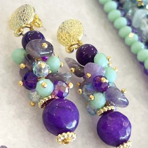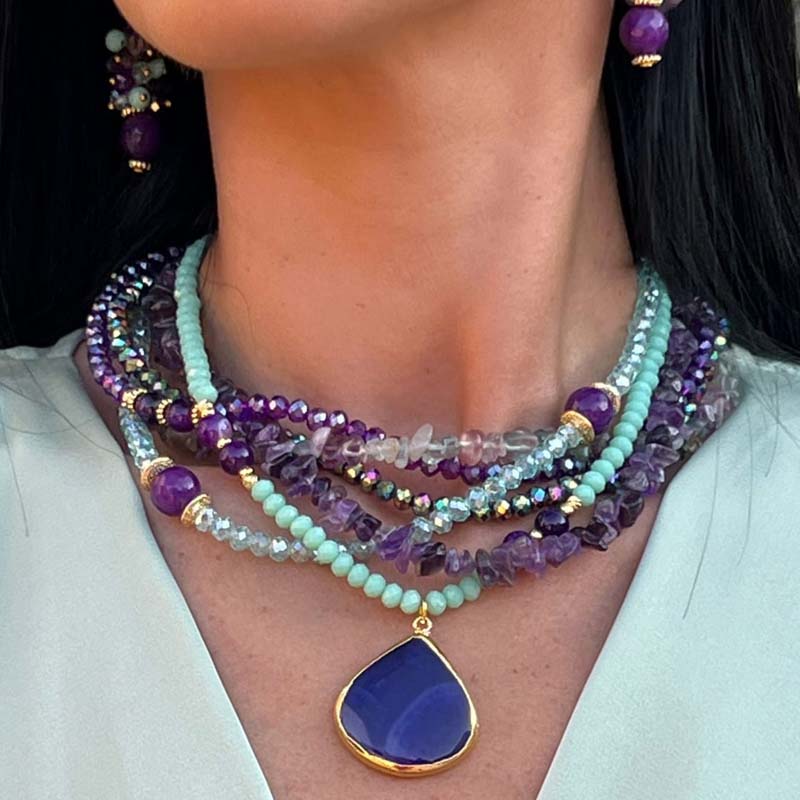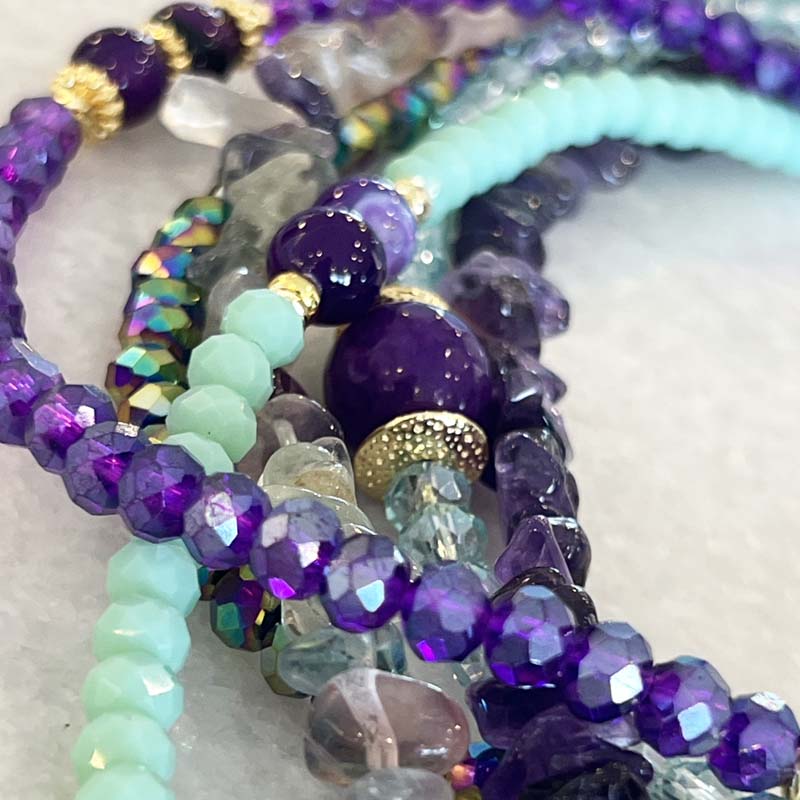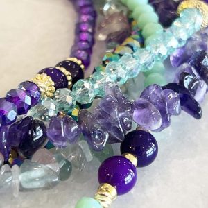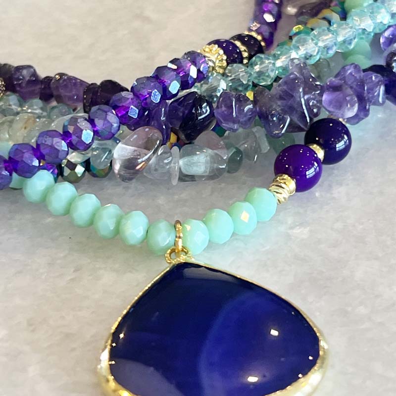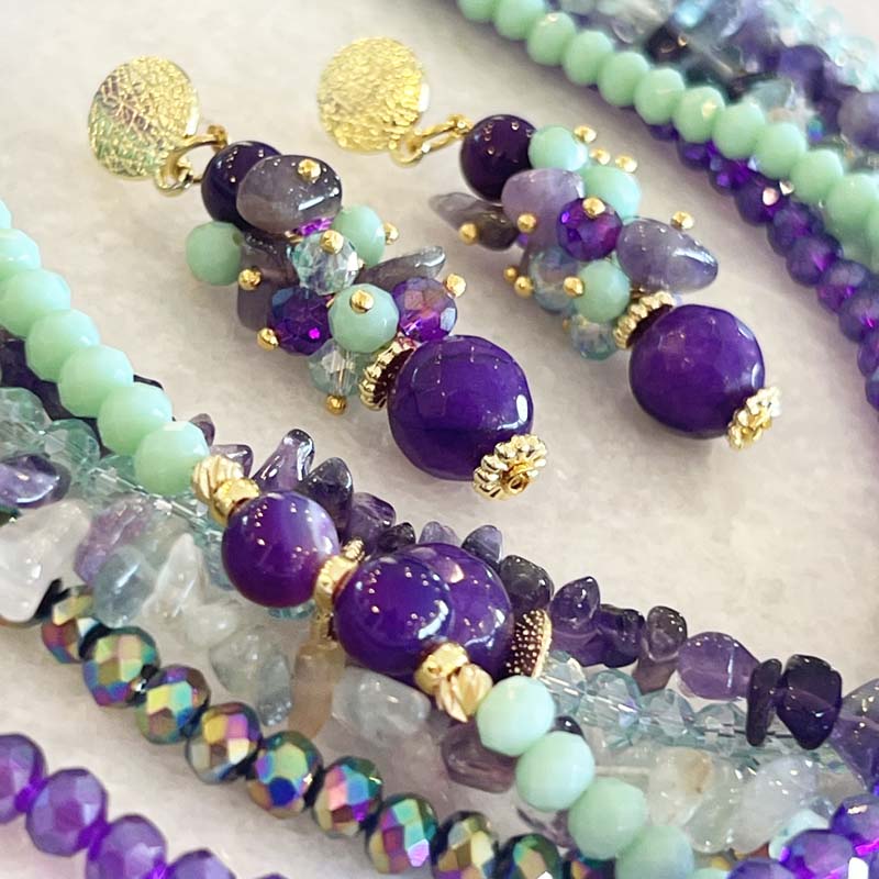 Amethyst, with its deep purple glow, is a stone of tranquility and protection—enhancing intuition, relieving stress, and bringing a sense of spiritual calm to every look. Agate is a soothing stone that brings emotional balance, inner stability, and a sense of calm—perfect for grounding your energy in style.