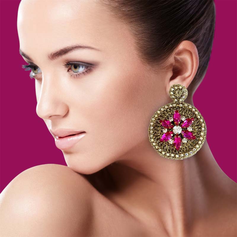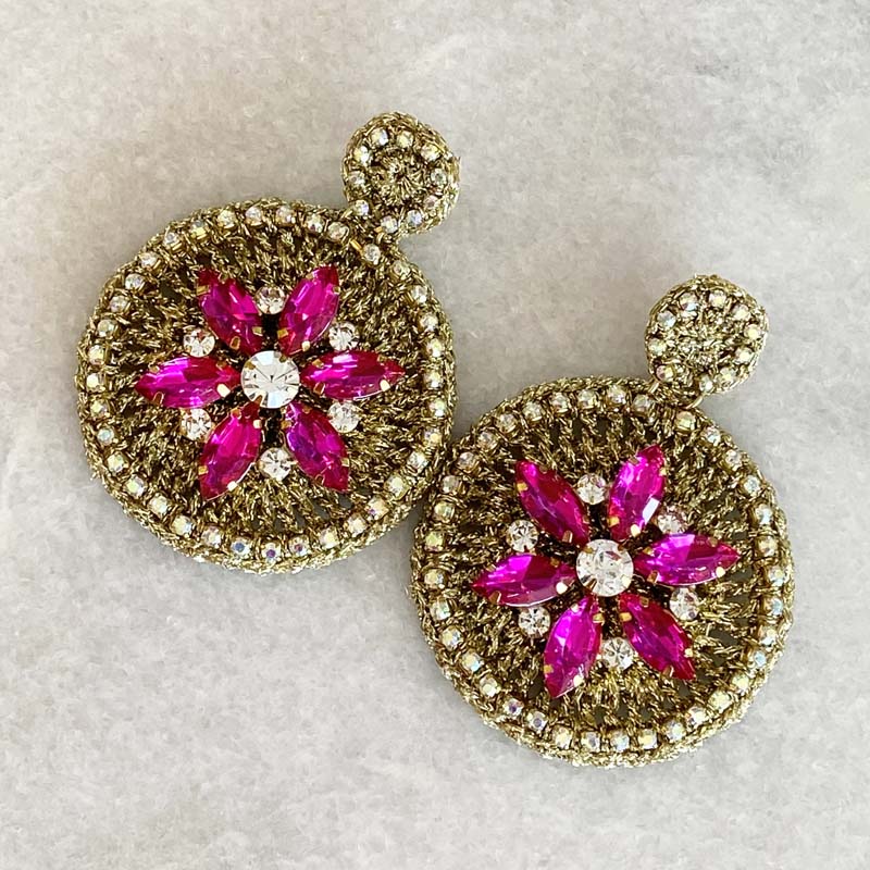 Statement Jewellery, handmade using only the finest materials and with the highest level of craftsmanship. Each piece is meticulously handwoven and embroidered, offering both comfort and durability. Crafted with high-quality crystals and 18kt gold hardware. Due to the handcrafted nature of our collection, colours and patterns may vary slightly from the image shown. Small differences enhance the beauty and uniqueness of each model. Earrings are Lightweight, Nikel Free and Hypoallergenic.