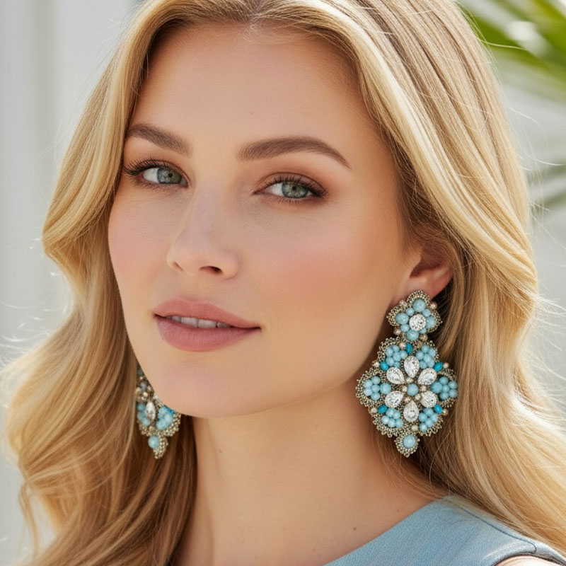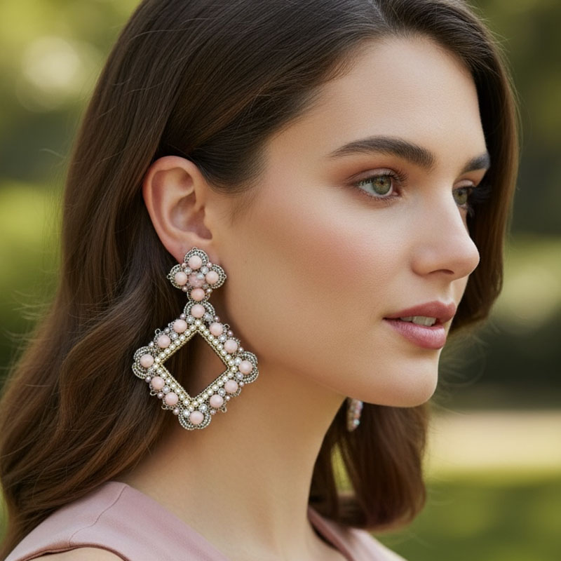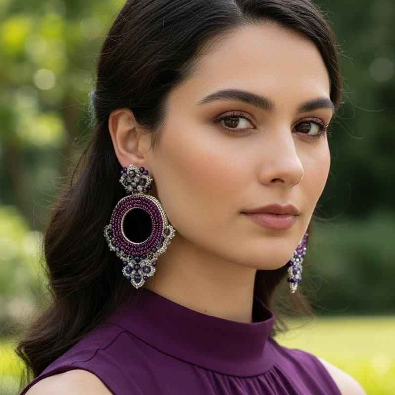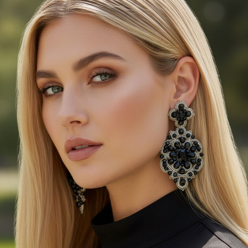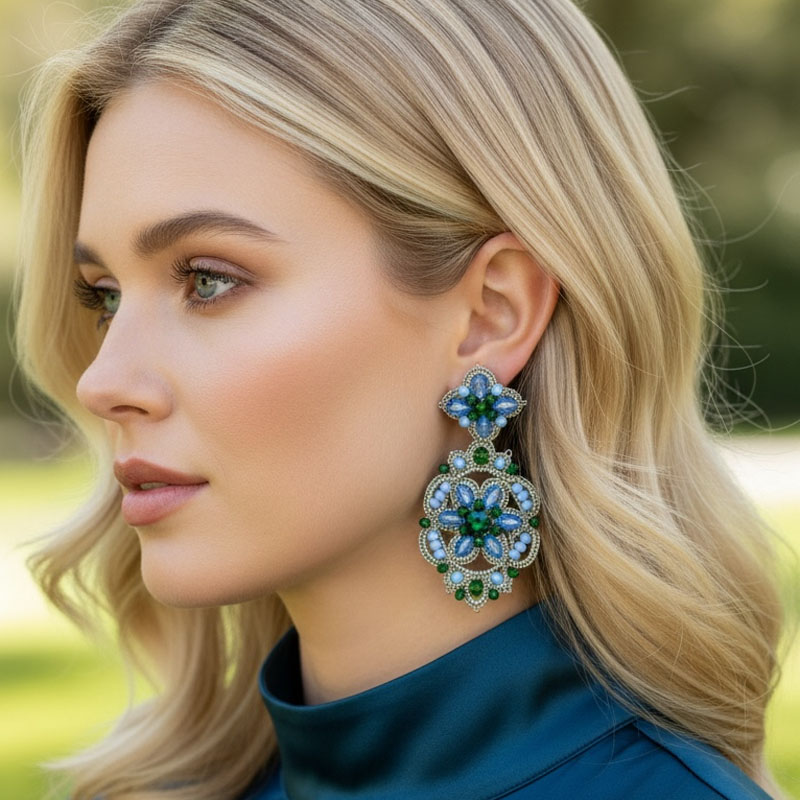 Handwoven Silver Crochet, Tatting And Embroidered Lightweight Crystal Statement Earrings