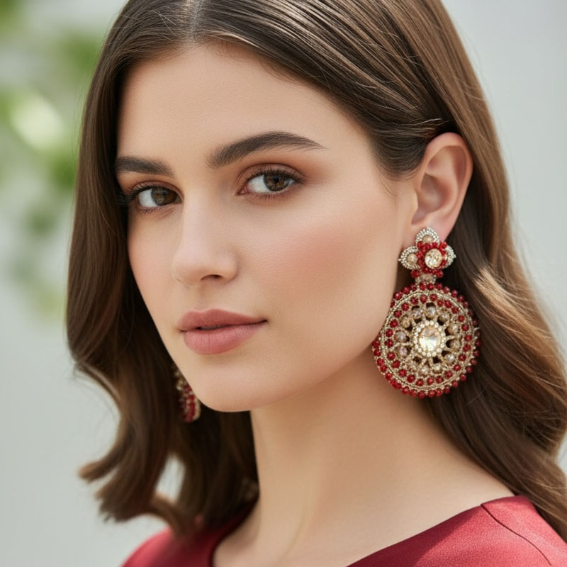 Handwoven Gold Crochet, Tatting And Embroidered Lightweight Crystal Statement Earrings